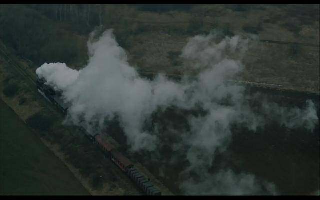来看电影另一重要段落,它发生在2小时14分 – 2小时18分之间。这是一组标志性的蒙太奇镜头,由四部分组成,即:项目施工、教堂礼拜、火车事故、伤痛复发(妻子腿伤)。