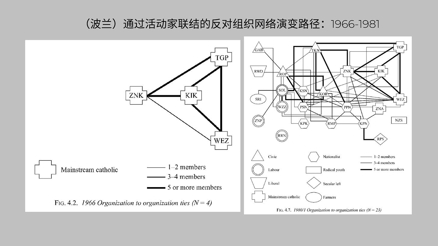 第一,搭建可複製、可裂殖、可擴張的早期合作框架。從波蘭社會運動史可以明顯看出來,1960年代波蘭天主教團體的反對者關係網,是後來團結工會時代反對派關係網的雛形。而這種由無數中間人搭建起來的關係網,不僅有力避免了反對派群體內部爭鬥,還從實質上促成了廣泛的社會合作和社會團結,保障社會運動得到此起彼伏的回應。也就是說,波蘭反對者群體根據早期合作模式,演化出覆蓋範圍更廣和形式更複雜的全國性關係網。